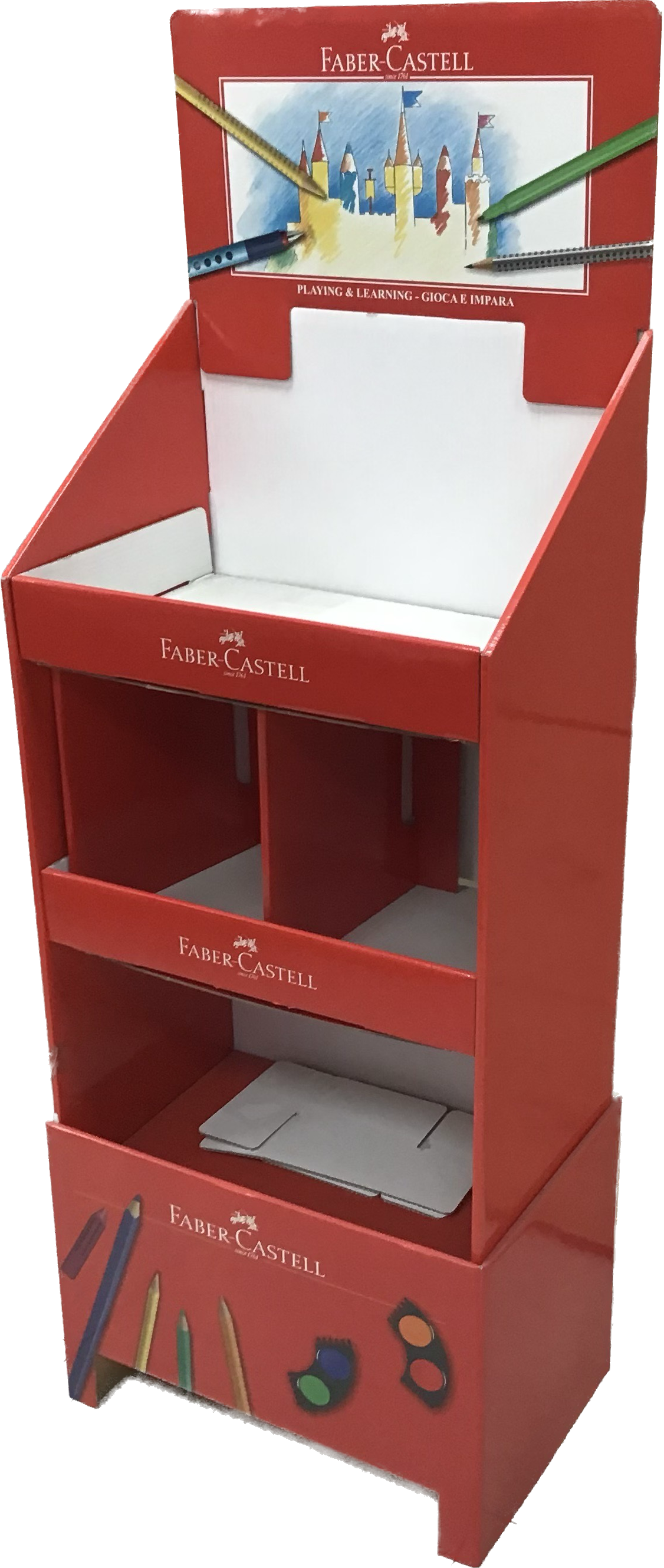 Ampia esperienza nella progettazione e produzione di materiali espositivi in cartone di tutte le dimensioni e per qualunque esigenza (promozionale, durevole, pre-assemblati, pre-caricati, appendibili e molto altro)